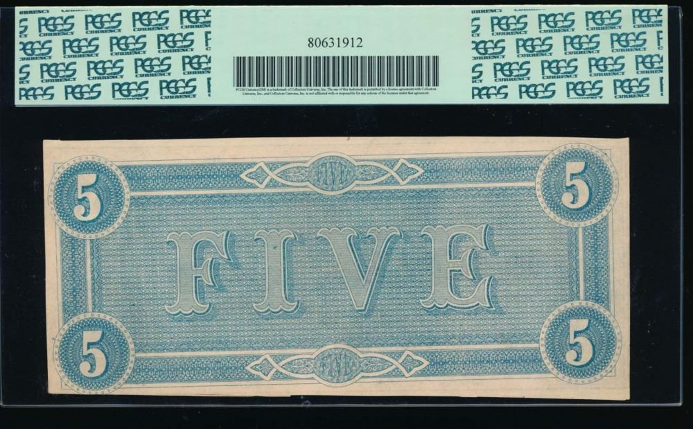 One 1864 $5 Confederate States of America Note PCGS 62PPQ.