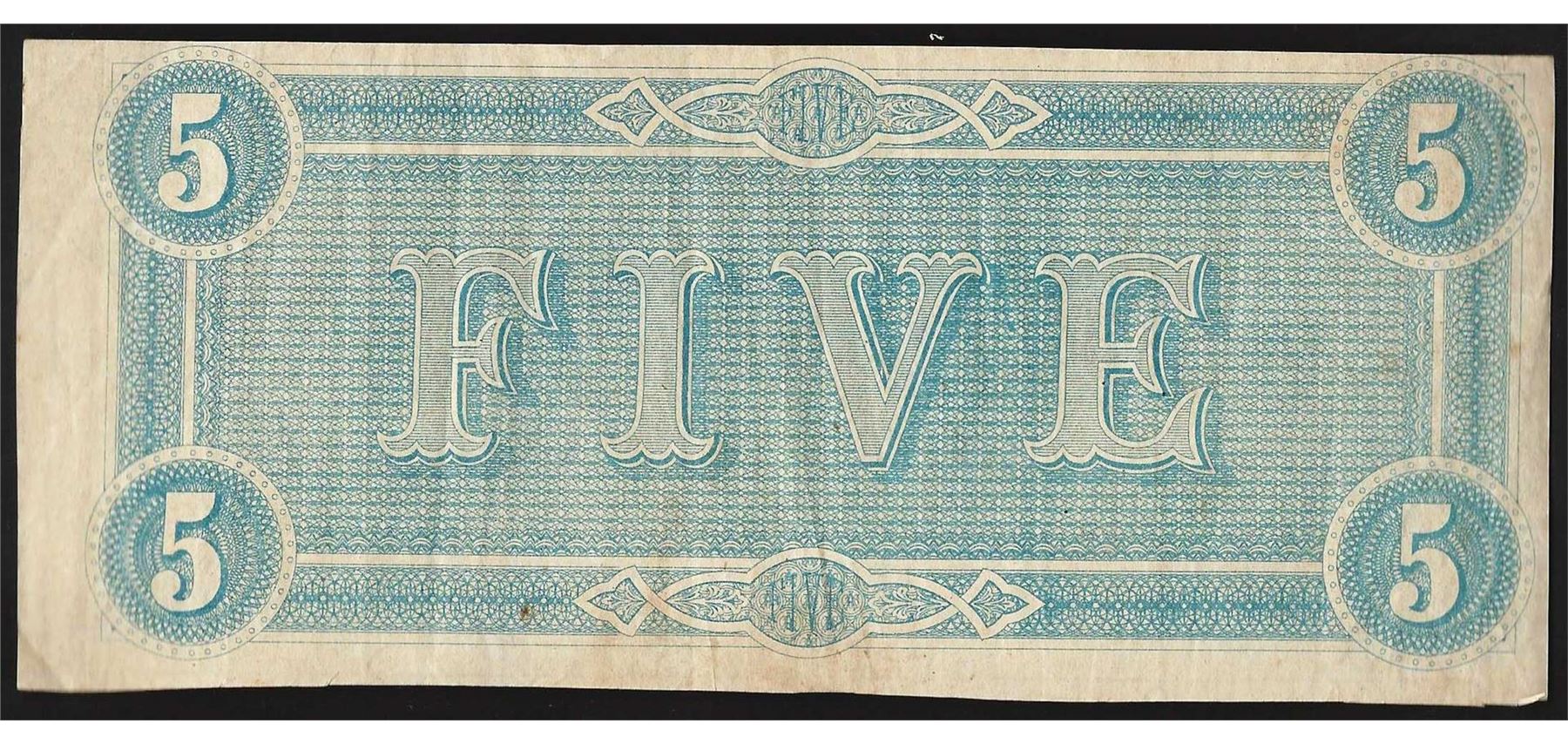 One 1864 $5 Confederate States of America Note.