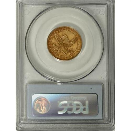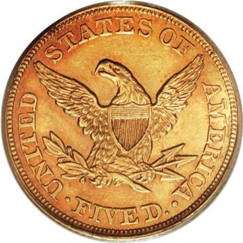 <B>1864 $5 MS61 PCGS.</B></I> By 1864, the Civil War had left an indelible imprint on the future of American coins and currency. One of the major consequences was the hoarding of precious metal, and the Union government had little bullion to mint in the East. The half eagle production for 1864, for example, amounted to just 4,100 pieces. That issue is one in a string of low-mintage P-mint issues from 1862 to 1872.<BR> This attractive yellow-orange example offers vibrant luster and exquisite detail. The reverse shows a splash of rose in the fields. Though the surfaces show a number of marks and wispy abrasions, the piece is unworn and retains strong visual appeal. An excellent representative for the discerning date collector. Tied for the finest certified by either NGC or PCGS (8/07).<BR><BR><B>Coin Engraver:</B> Christian Gobrecht<BR><BR><b>Shipping:</b> Coins & Currency (<a target="_blank" href="http://www.heritageauctions.com/common/shipping.php">view shipping information</a>)
