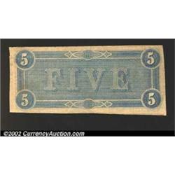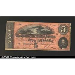 1864 $5 State Capitol at Richmond, VA in center; C.G. Memminger on right, T-69, VF-XF.