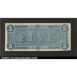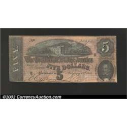 1864 $5 State Capitol at Richmond, VA in center; C.G. Memminger on right, T-69, VF+.