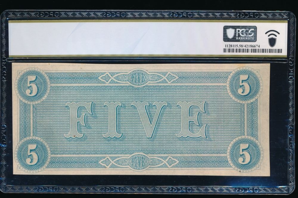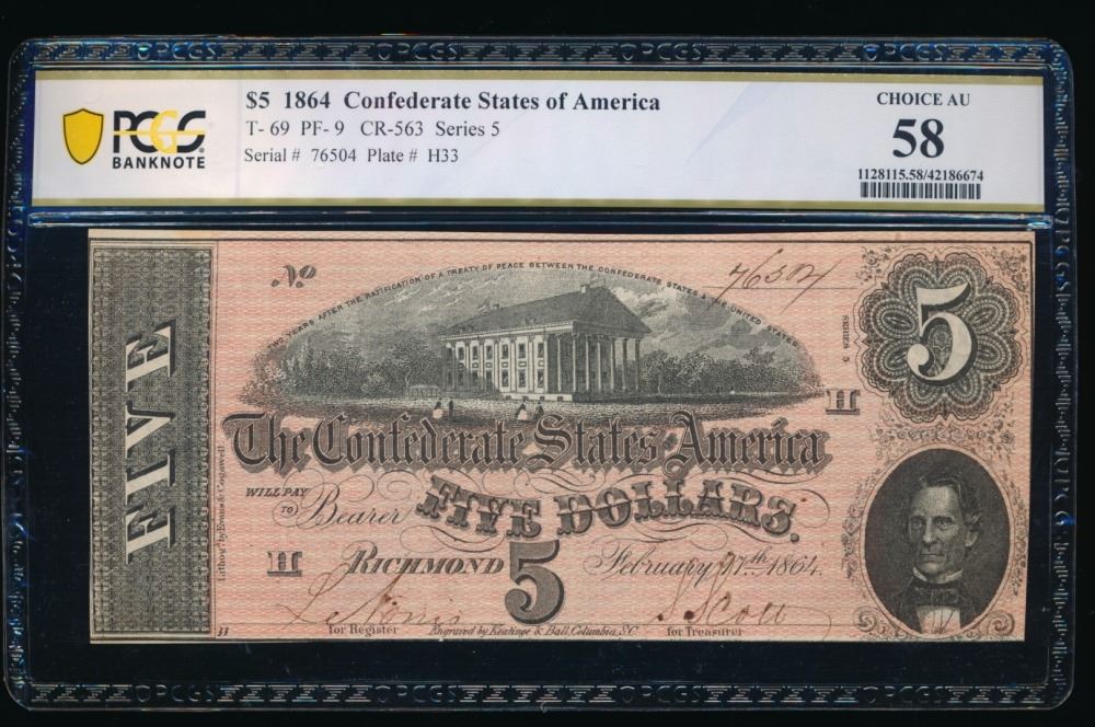 One 1864 $5 T-69 Confederate PCGS 58.