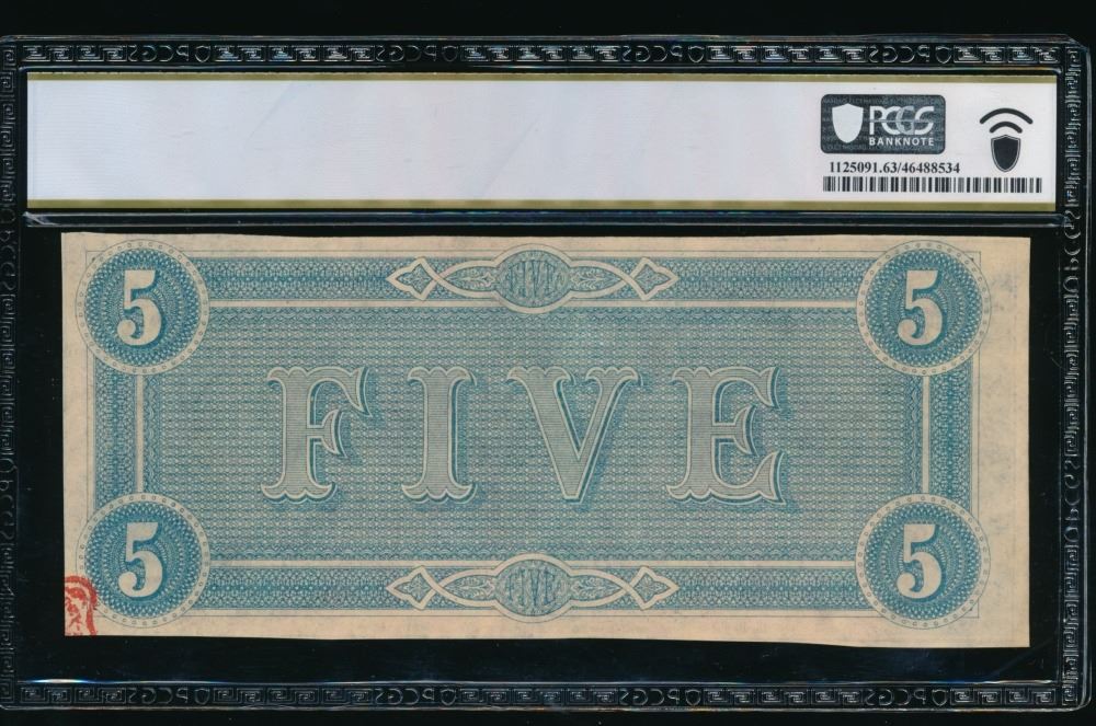 One 1864 $5 T-69 Confederate PCGS 63PPQ.