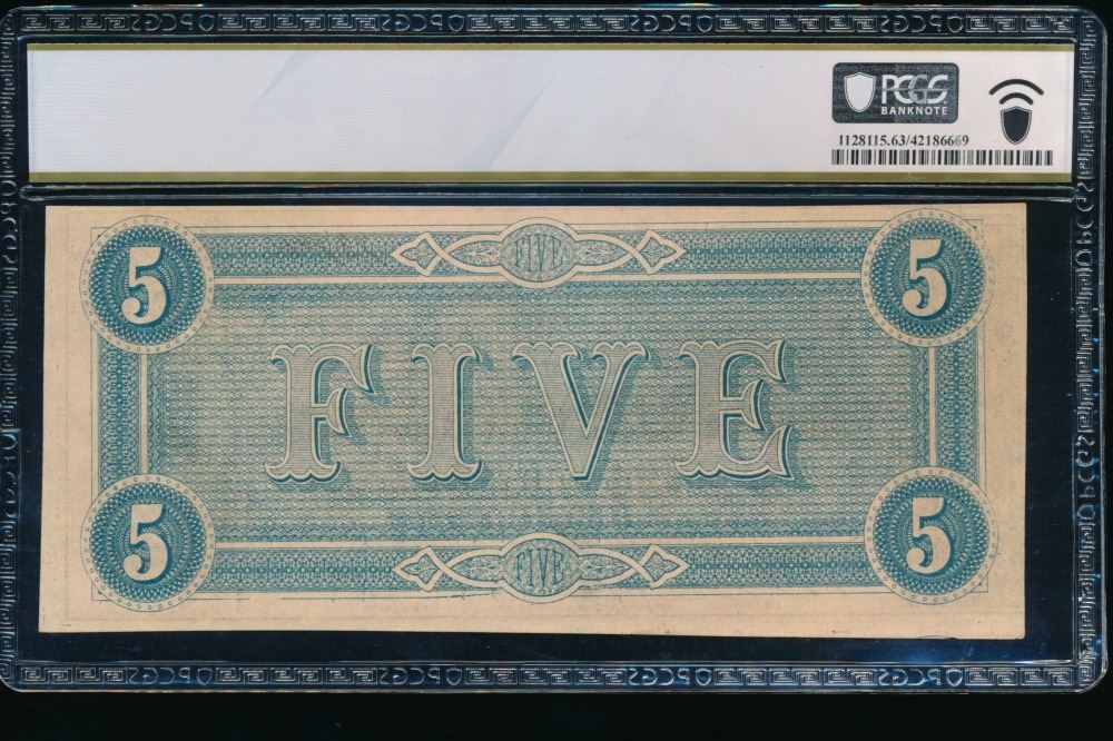 One 1864 $5 T-69 Confederate PCGS 63.