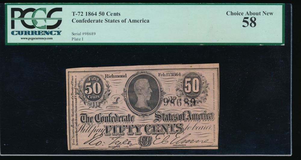 One 1864 50 Cent Confederate States of America Note PCGS 58.