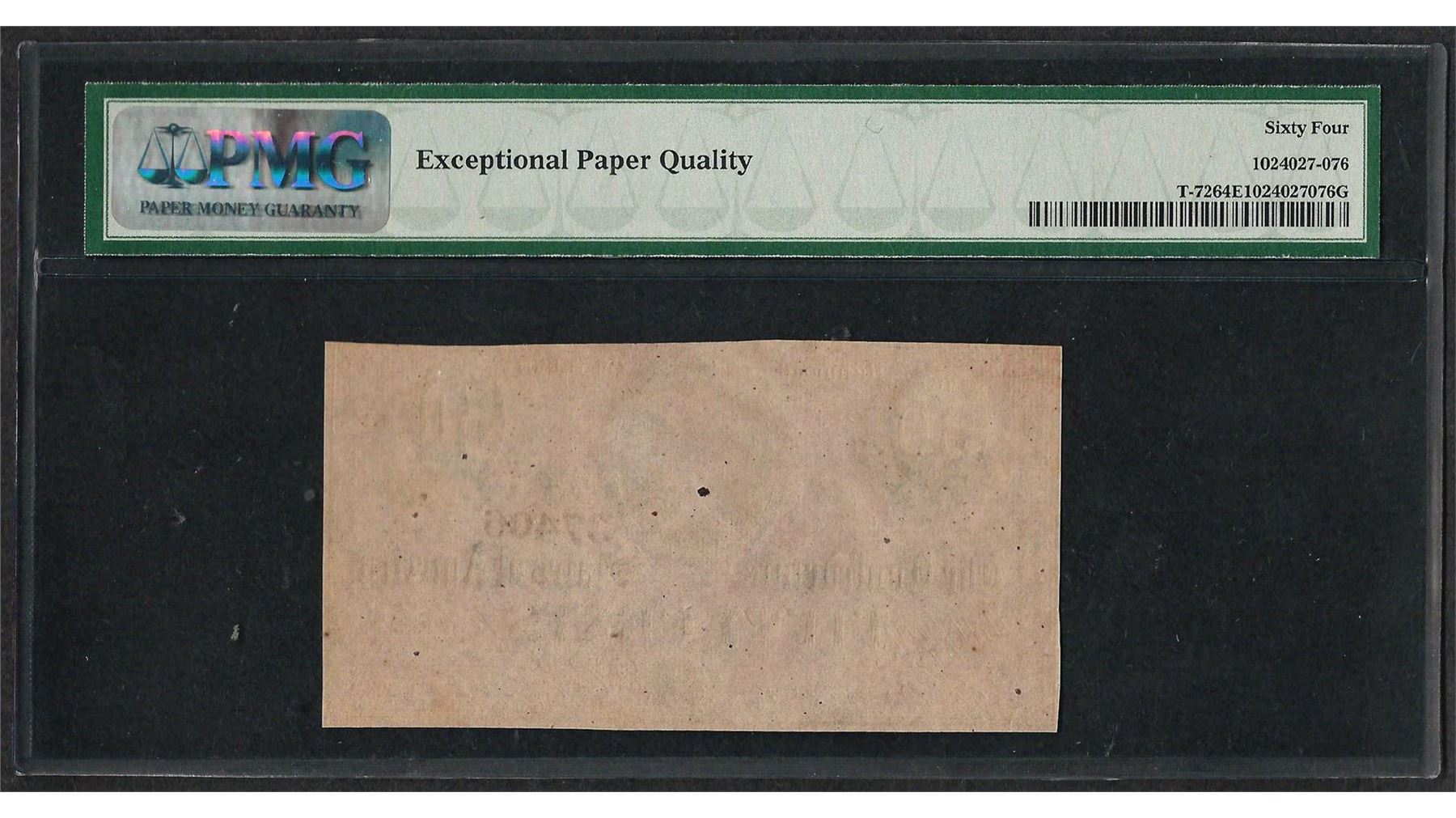 One 1864 50 Cents Confederate States of America Note T-72 PMG Choice Uncirculated 64EPQ. PMG Certified.