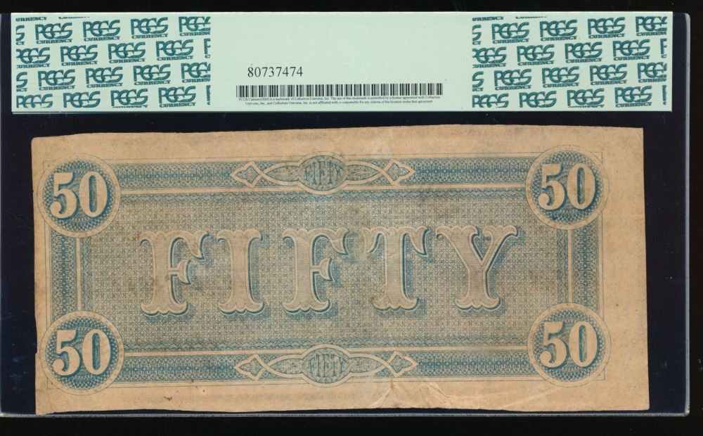 One 1864 $50 Confederate States of America Note PCGS 35.