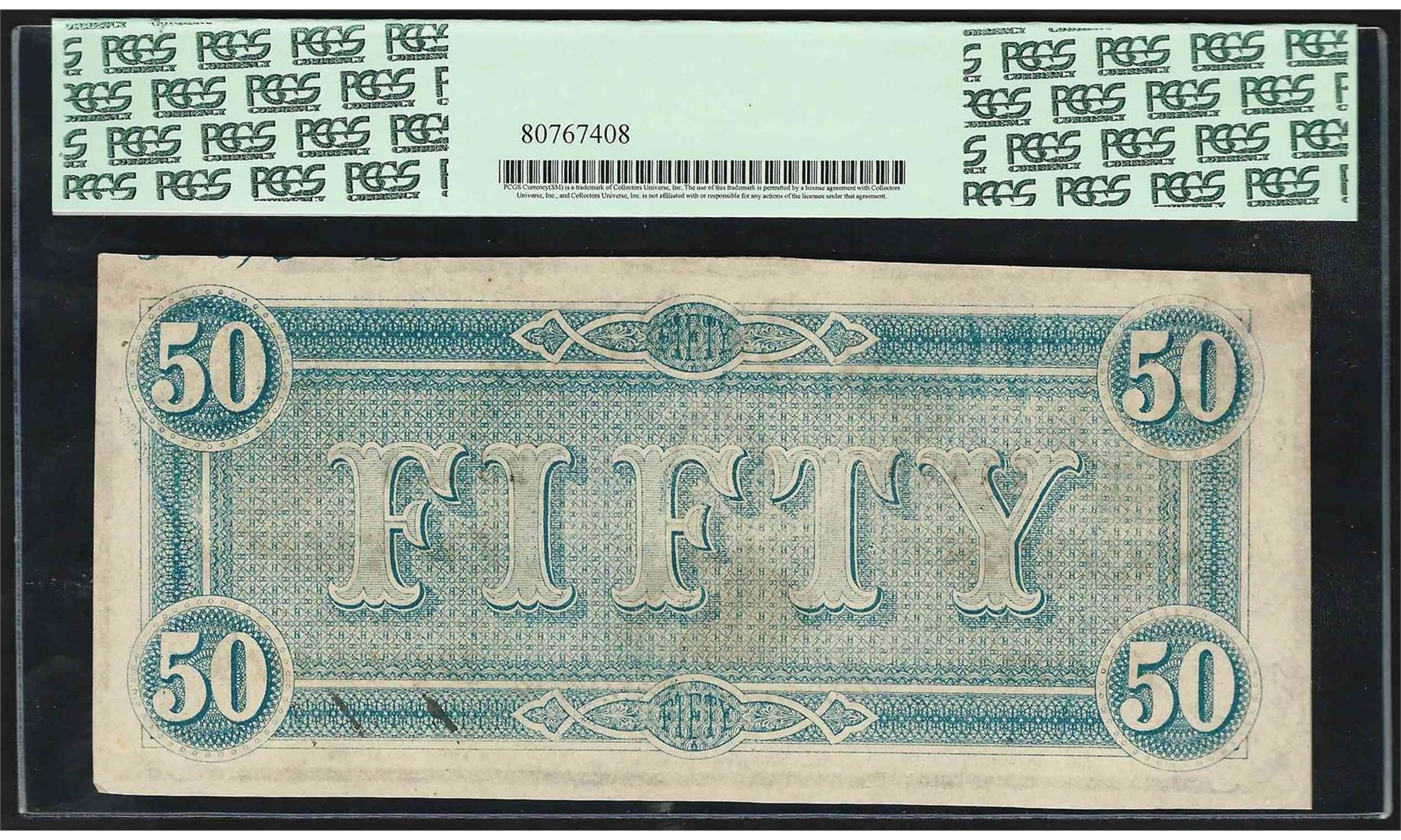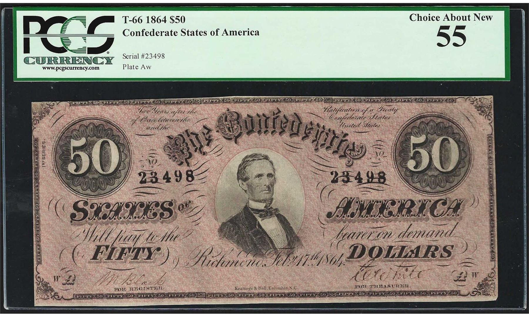 1864 $50 Confederate States of America Note T-66 PCGS Choice About New 55