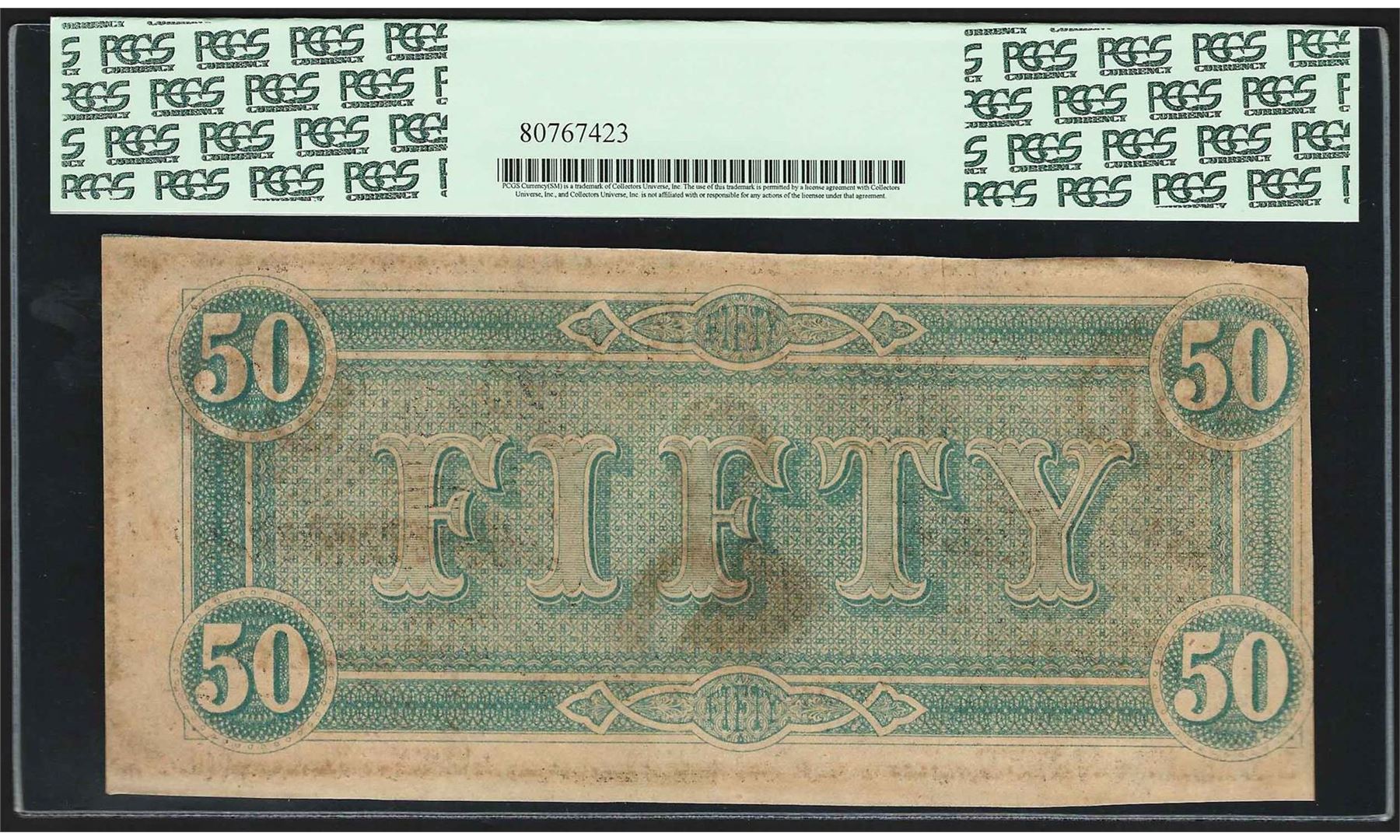 One 1864 $50 Confederate States of America Note T-66 PCGS New 62PPQ. PCGS Graded.