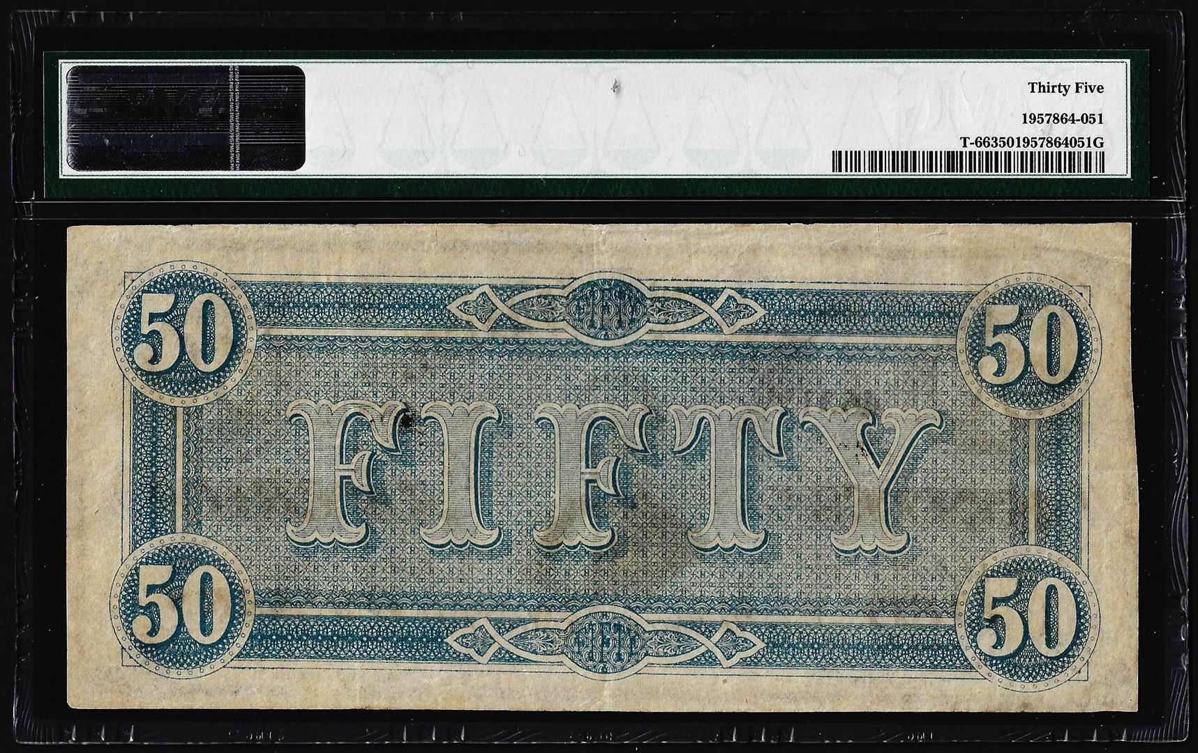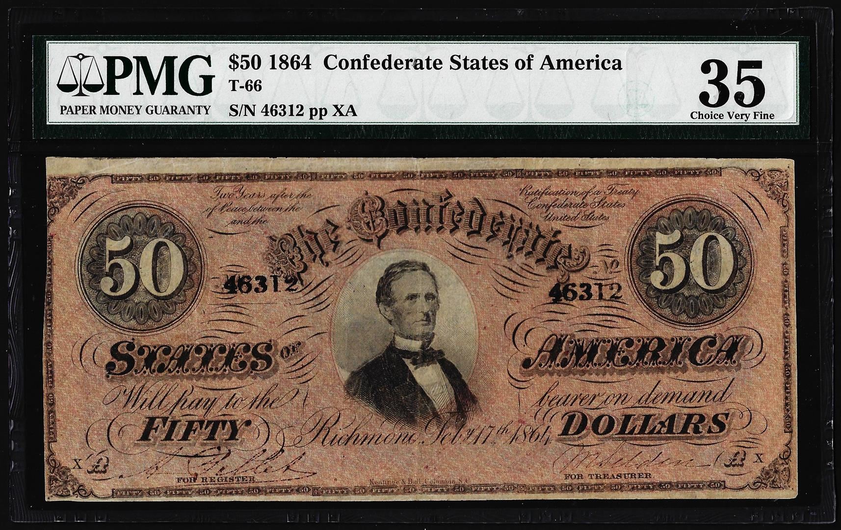 1864 $50 Confederate States of America Note T-66 PMG Choice Very Fine 35