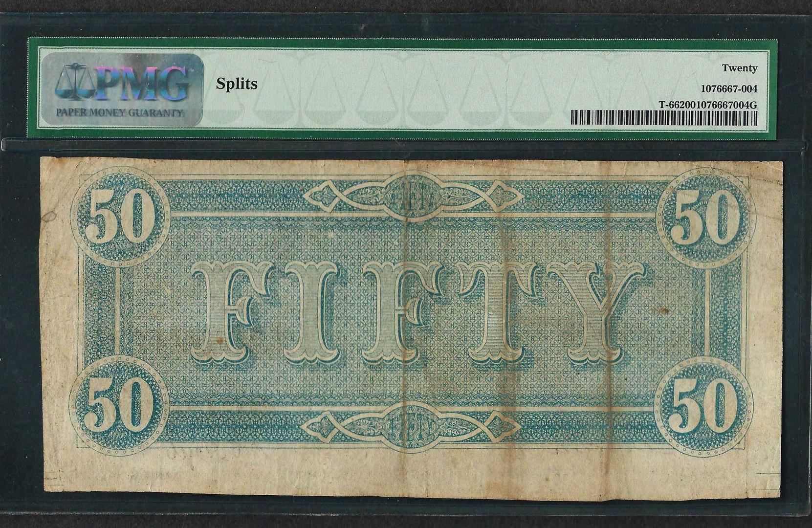 1864 $50 Confederate States of America Note T-66 PMG Very Fine 20