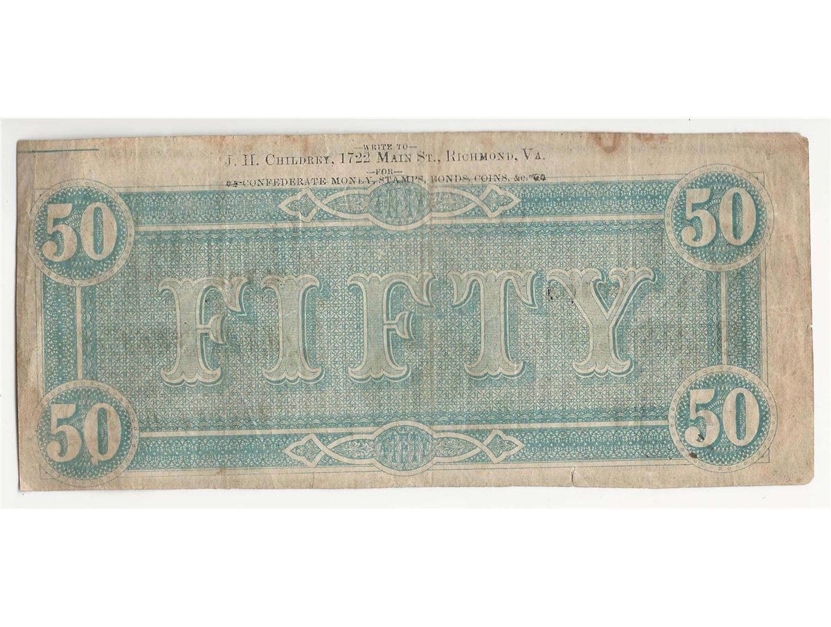 One 1864 $50 Confederate States of America Note.