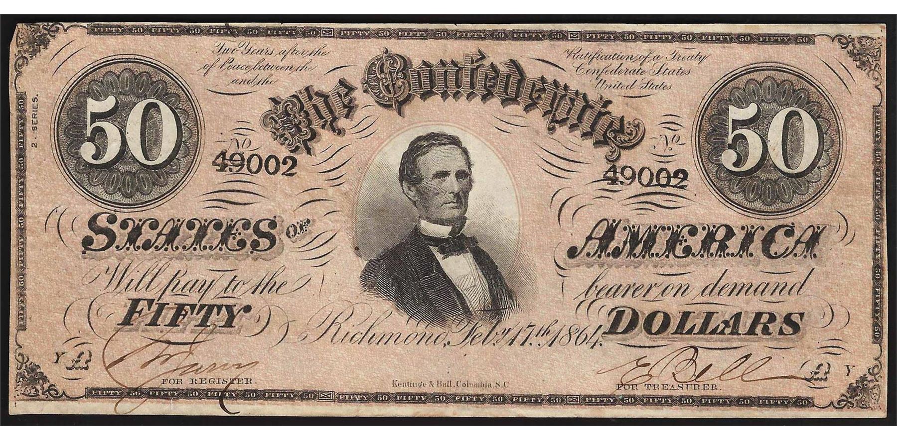 One 1864 $50 Confederate States of America Note.