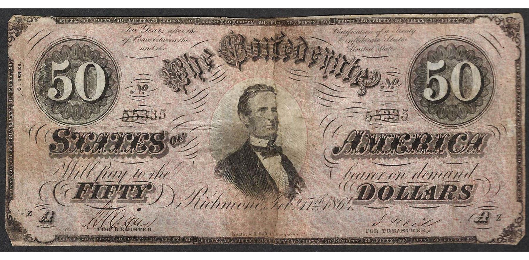 One 1864 $50 Confederate States of America Note.