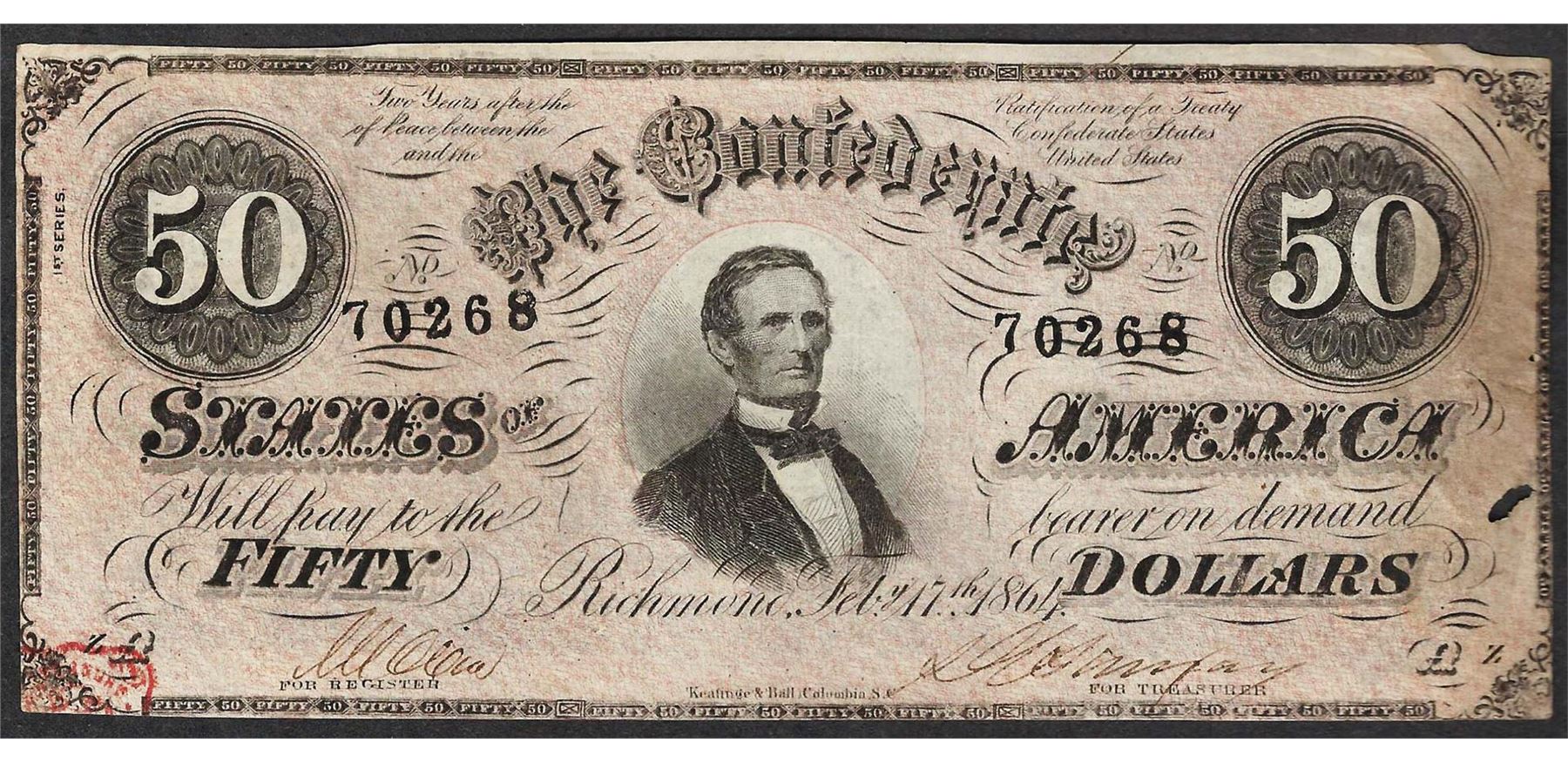 One 1864 $50 Confederate States of America Note.