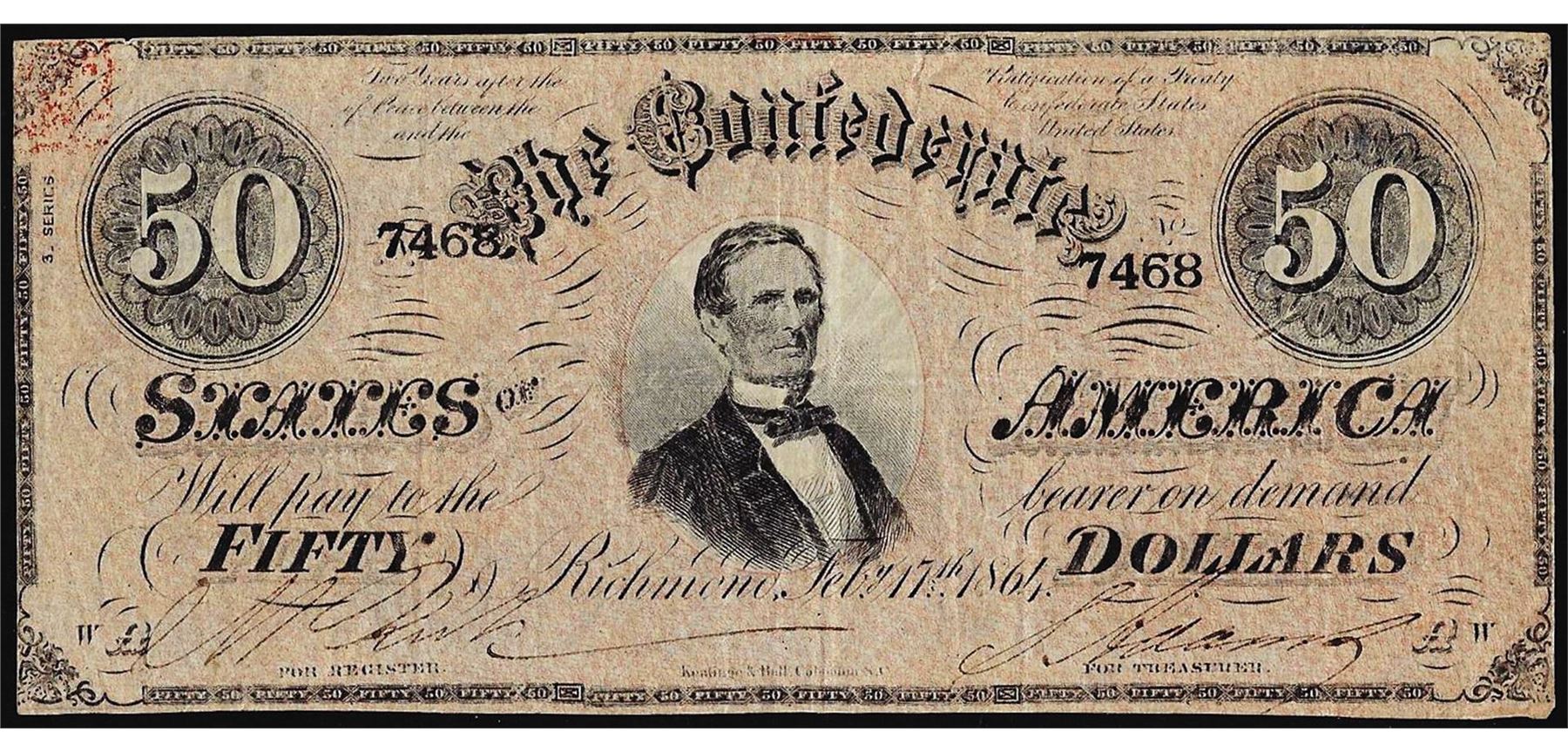 One 1864 $50 Confederate States of America Note.