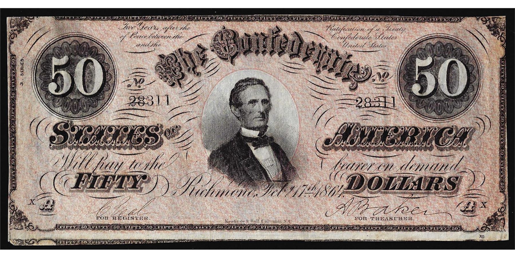 One 1864 $50 Confederate States of America Note.