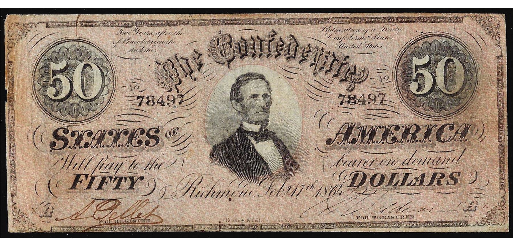 One 1864 $50 Confederate States of America Note.