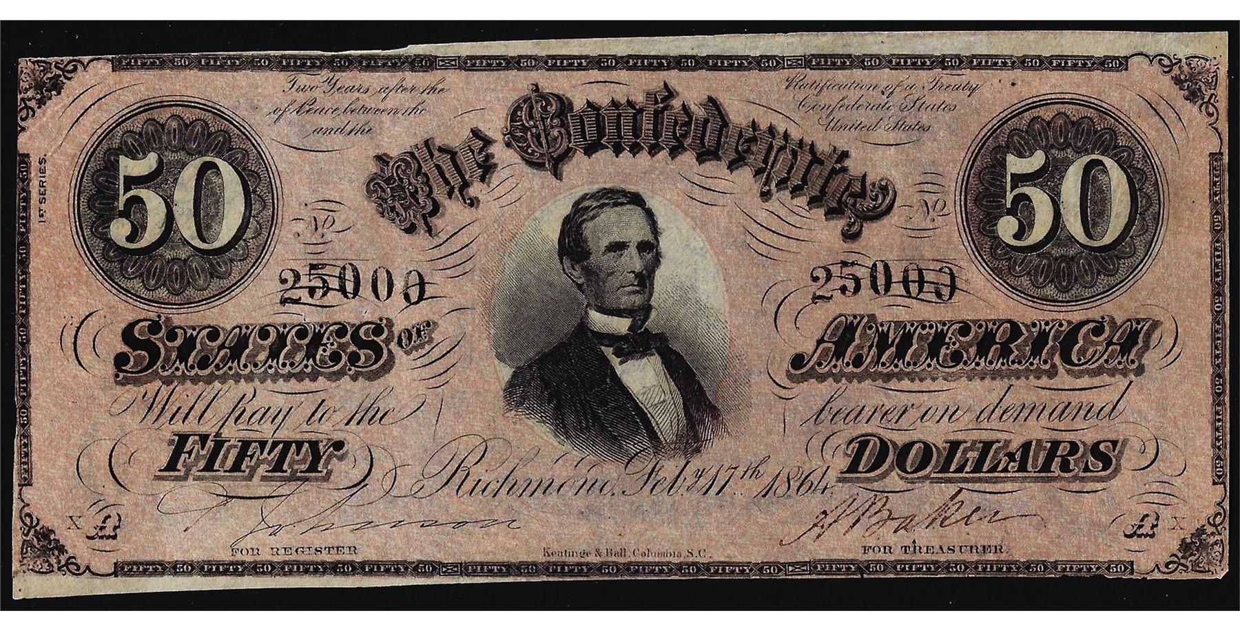 One 1864 $50 Confederate States of America Note.