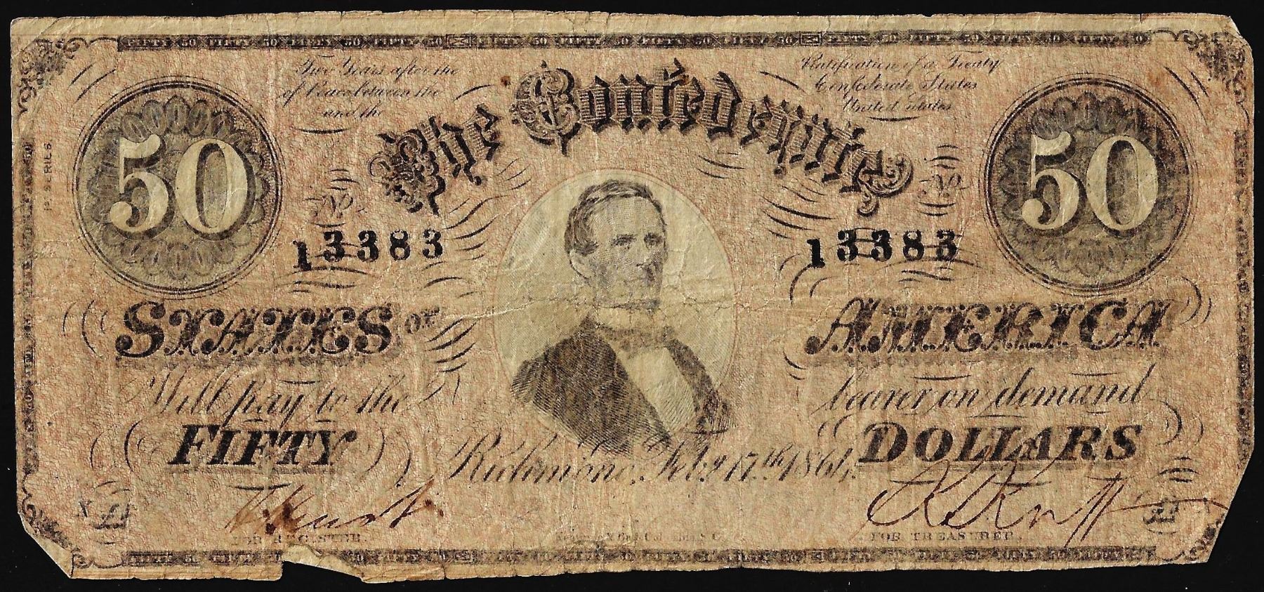 One 1864 $50 Confederate States of America Note.