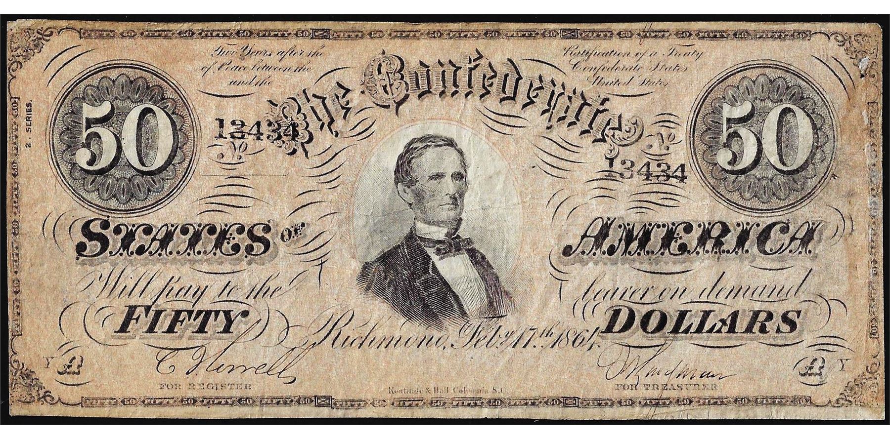 One 1864 $50 Confederate States of America Note.