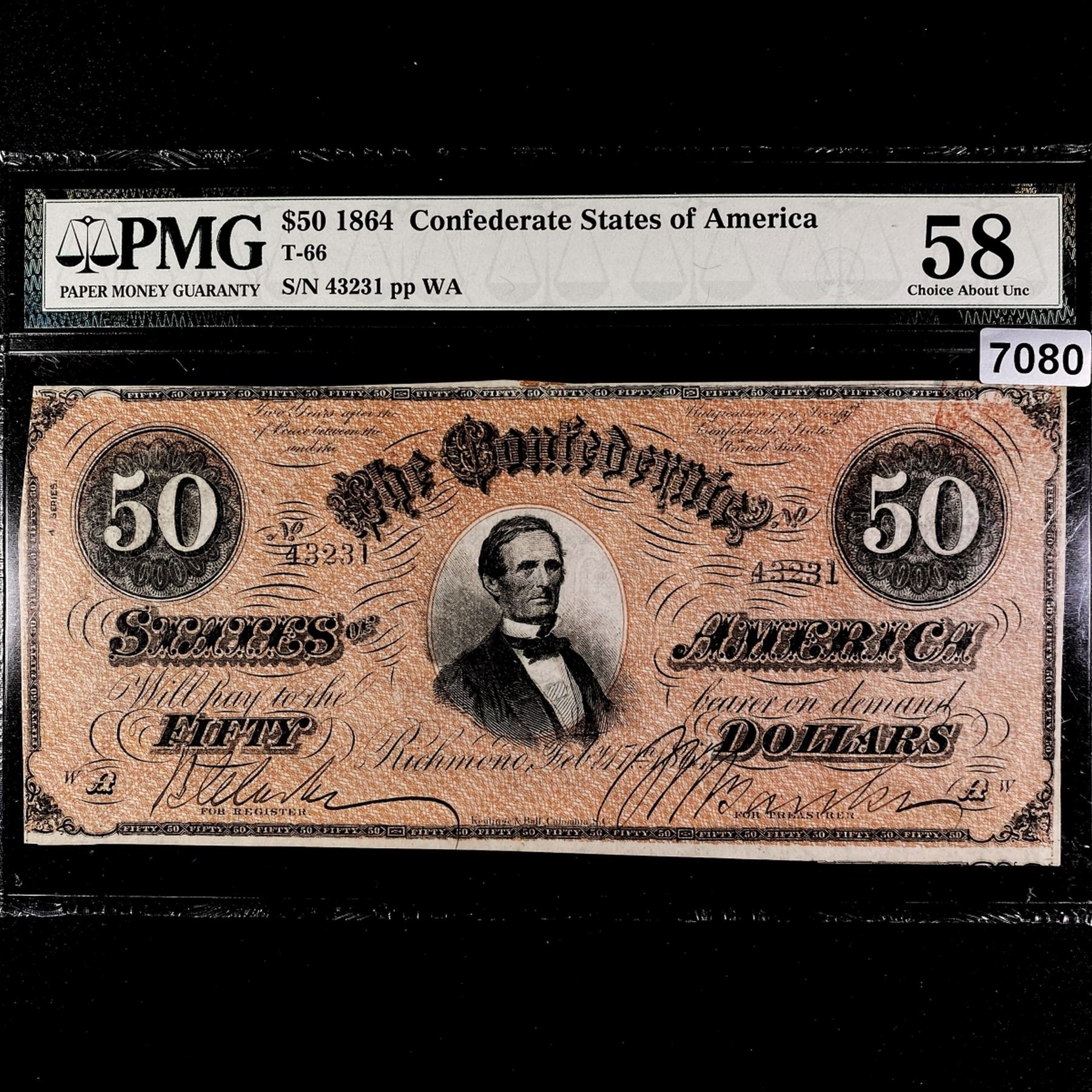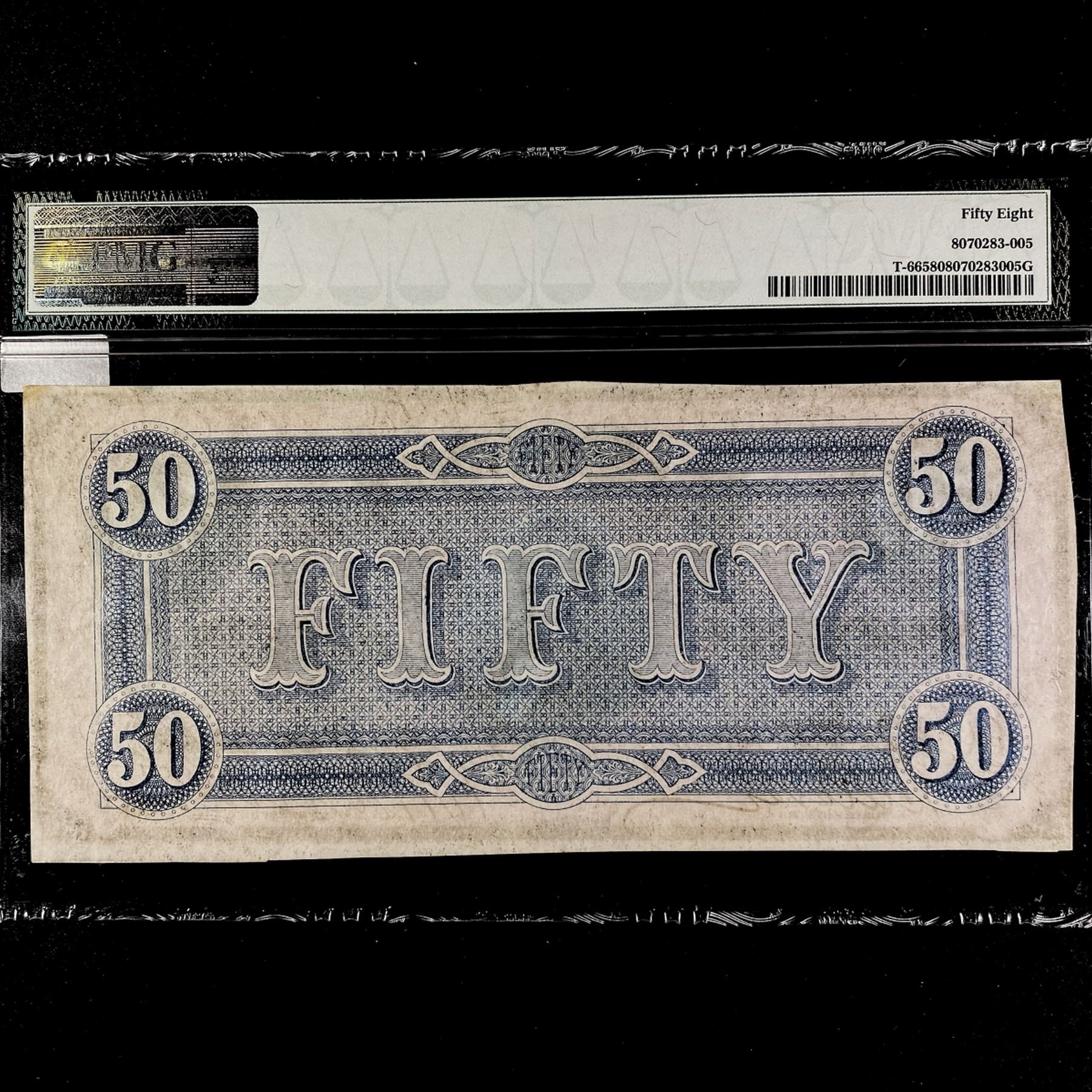 1864 $50 Dollar Confederate States Note PMG-58AU