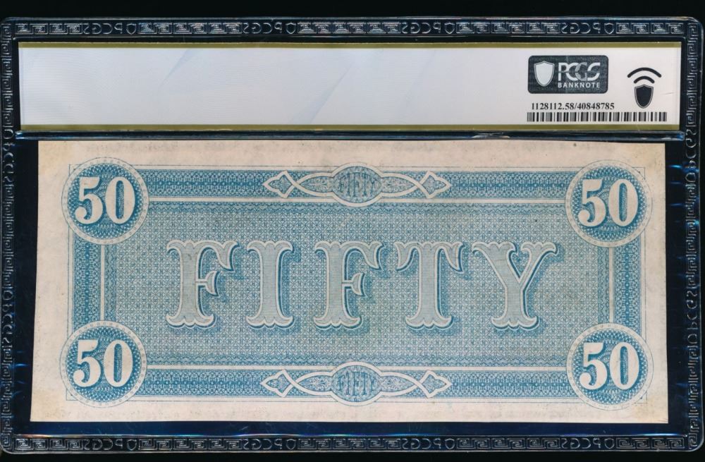 One 1864 $50 T-66 Confederate PCGS 58.