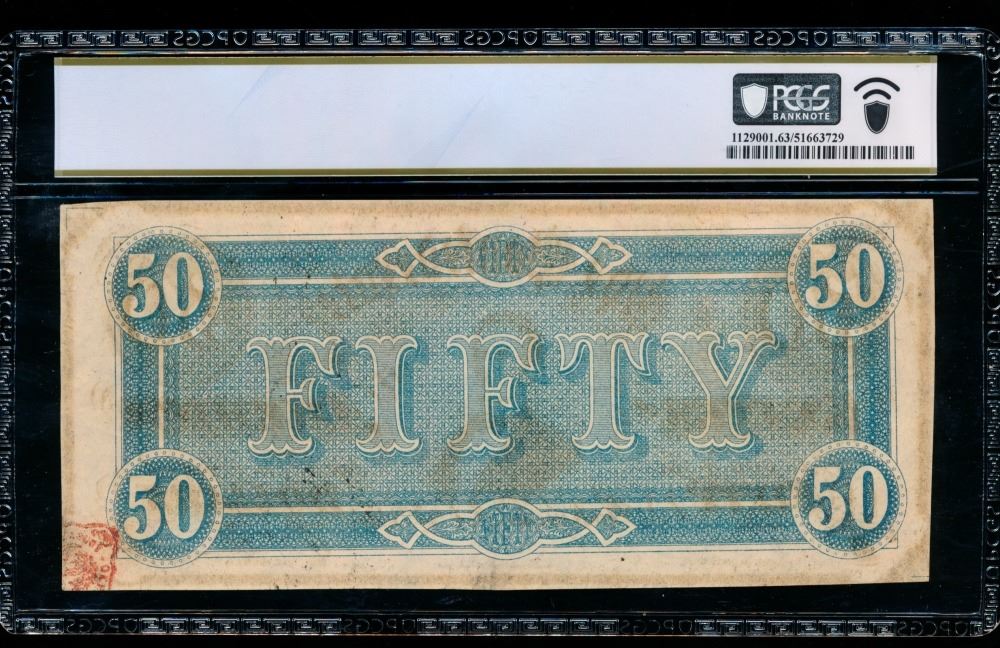 1864 $50 T-66 Confederate PCGS 63