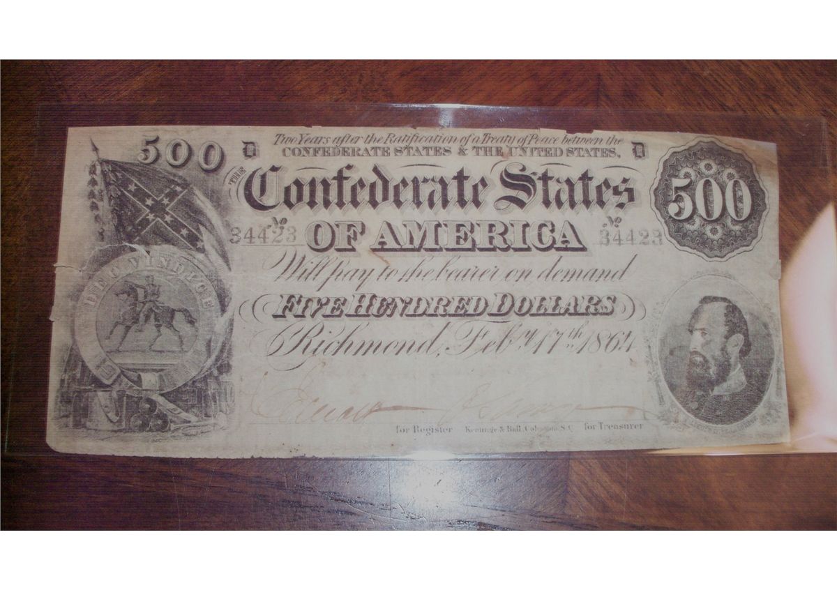 1864 $500 CSA CONFEDERATE CIVIL WAR CURRENCY (taped corner)