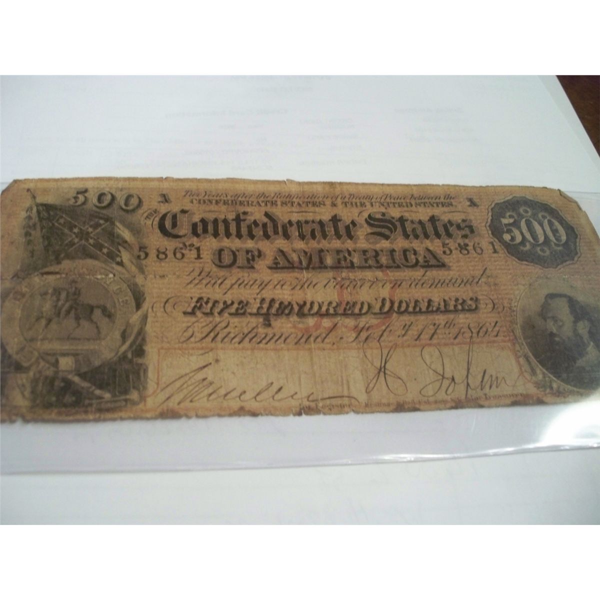 1864 $500 CSA CONFEDERATE NOTE (Torn middle horizontally), not torn this is $550