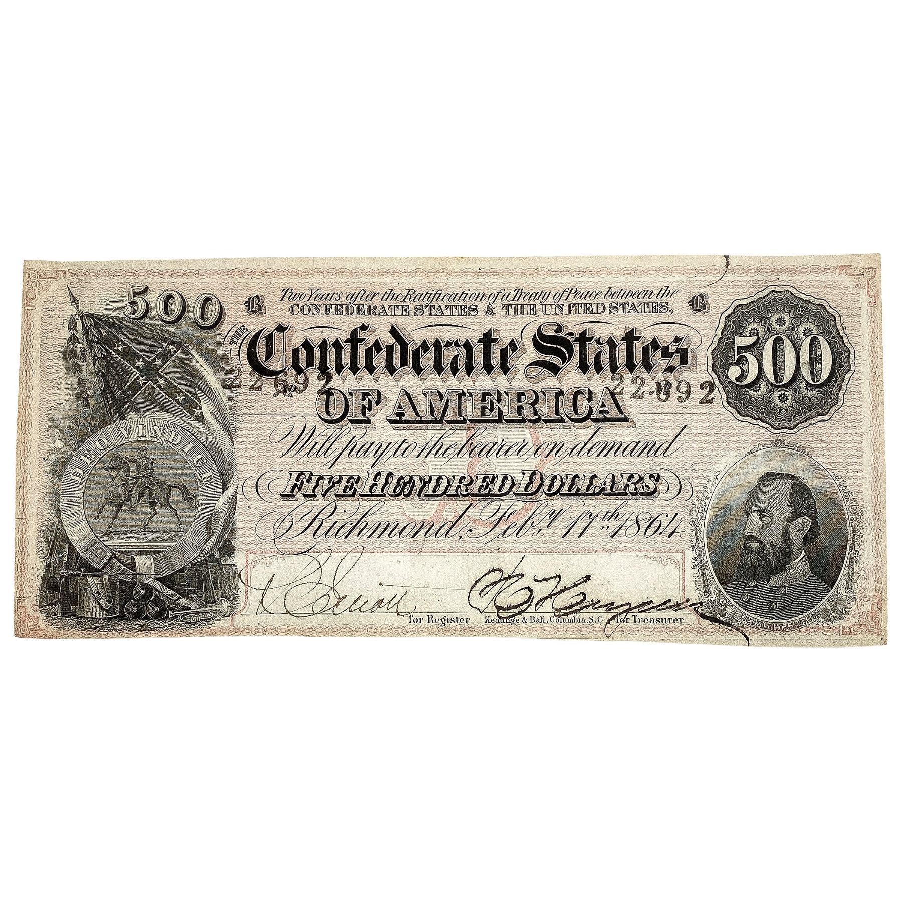 1864 $500 Confed. States of America Note-Richmond