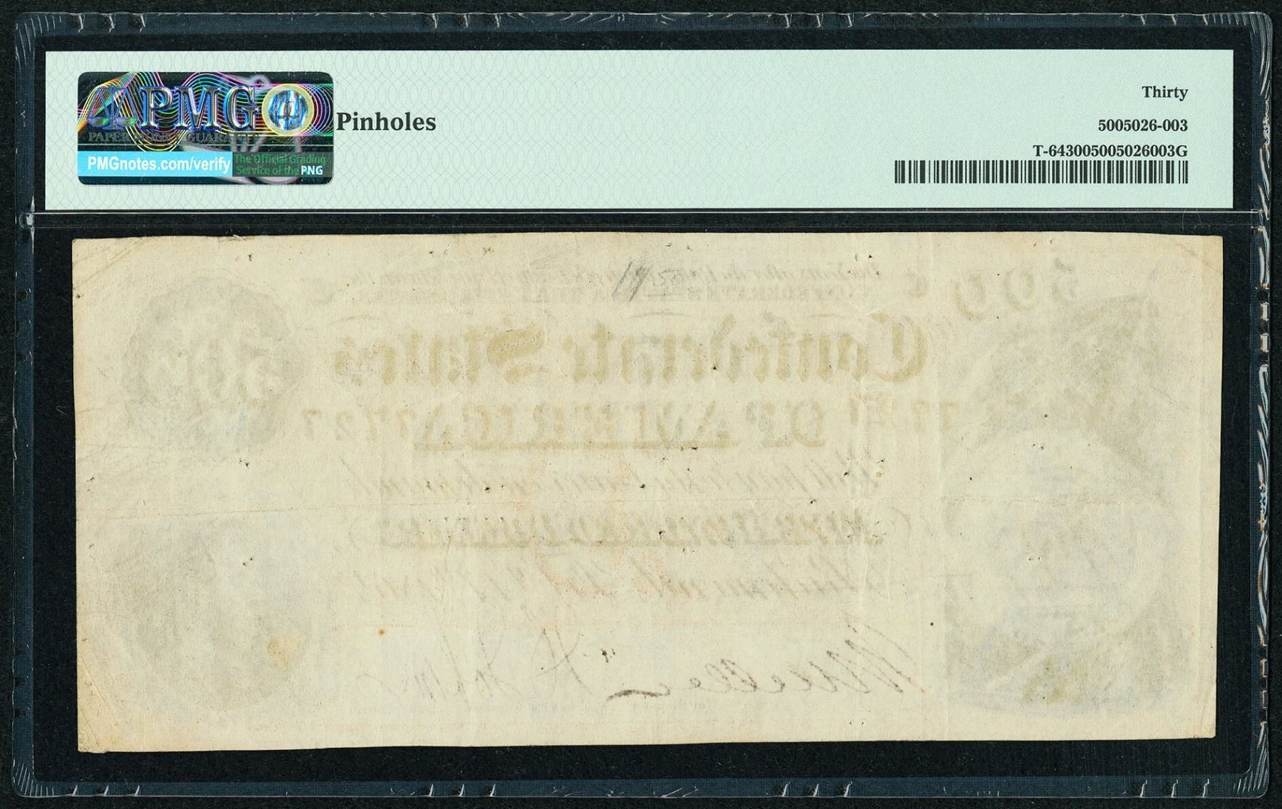 One 1864 $500 Confederate States of America Note PMG 30.