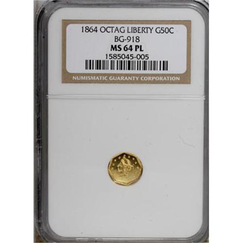 <B>1864 50C BG-918 MS64 Prooflike NGC.</B></I> NGC Census: (2/0). PCGS Population (0/0). (#710776)<BR><BR><b>Shipping:</b> Coins & Currency (<a target="_blank" href="http://www.heritageauctions.com/common/shipping.php">view shipping information</a>)
