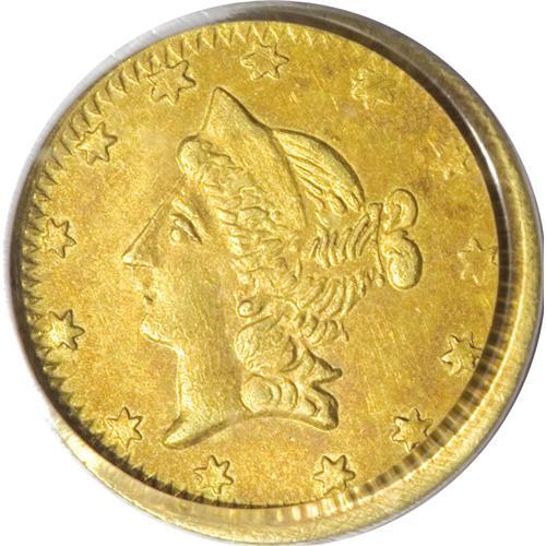 <B>1864 50C Liberty Round 50 Cents, BG-1016A, R.8 MS63 PCGS.</B></I> PCGS has certified just three examples of BG-1016A, and the present piece is the single finest graded by two points. Well struck, unlike the MS61 PCGS Jay Roe specimen, which has weakness on the portrait and the 8 in the date. A magnificent opportunity for the dedicated fractional gold collector.<BR><I>From The Diamond K Collection of California Fractional Gold.</B></I><BR><BR><b>Shipping:</b> Coins & Currency (<a target="_blank" href="http://www.heritageauctions.com/common/shipping.php">view shipping information</a>)