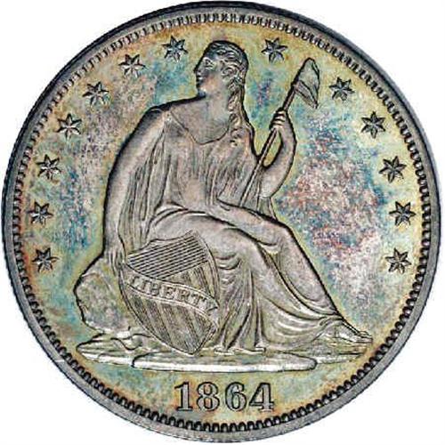 1864 50C PR65 NGC. Lush apple-green, olive, and peach 1864[50C] PR65 NGC.