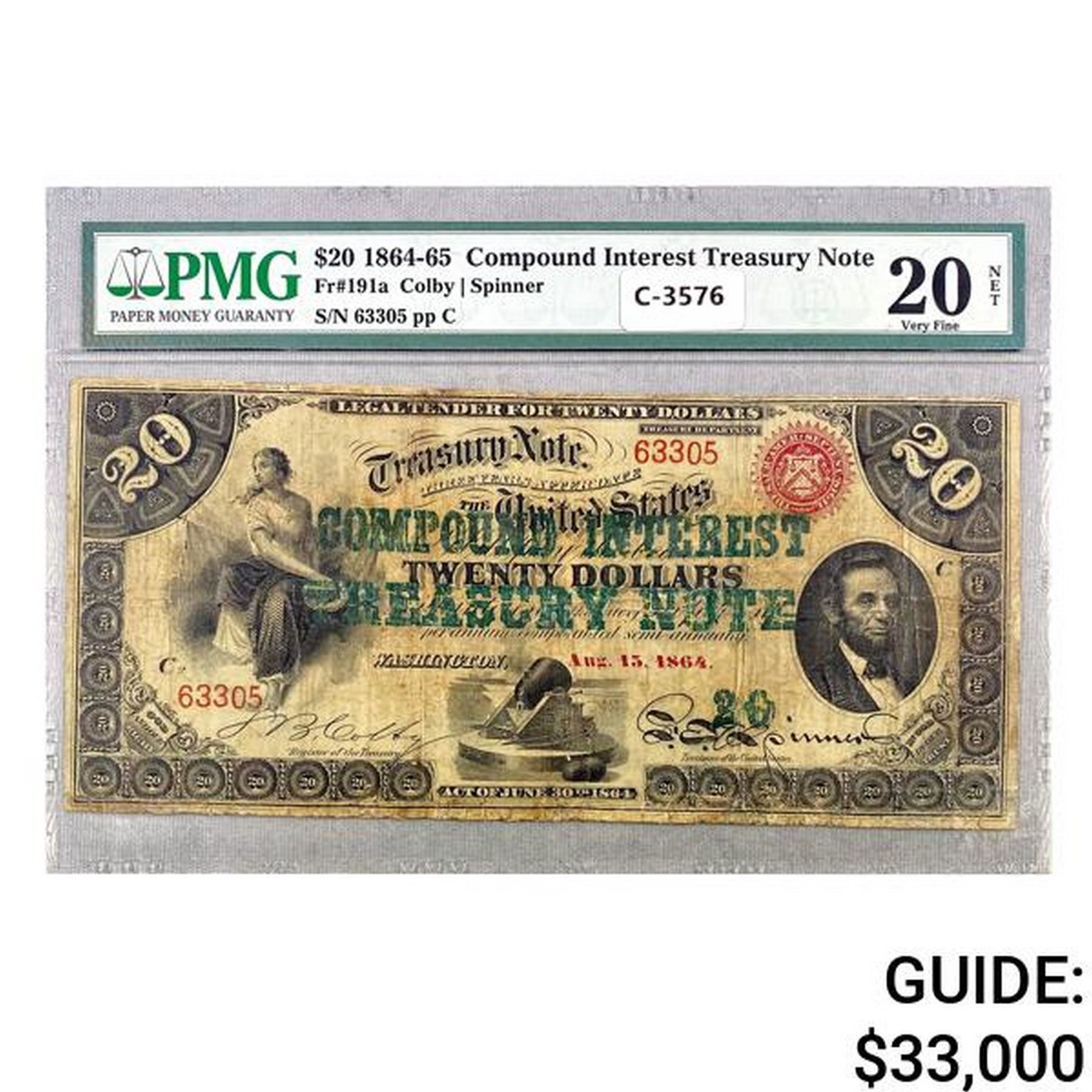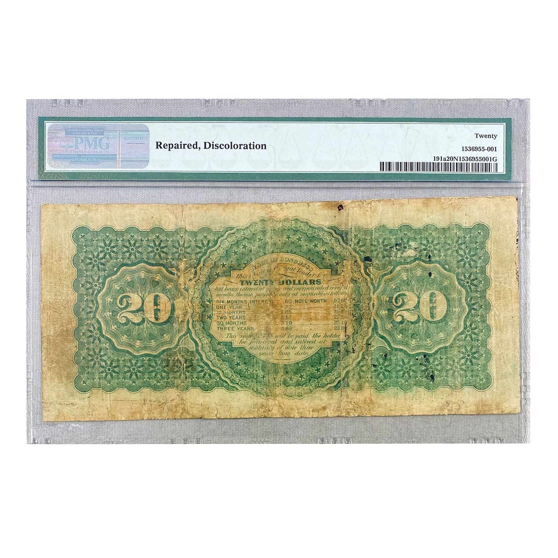 1864-65 $20 COMPOUND INTEREST TREASURY PMG VF20