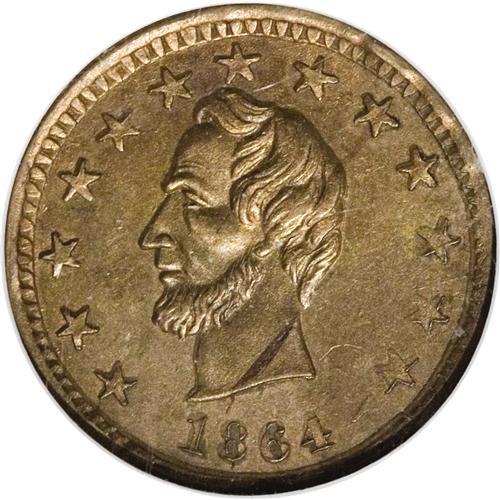 1864 Abraham Lincoln, Fuld 127/295D, MS62 NGC. Copper-n