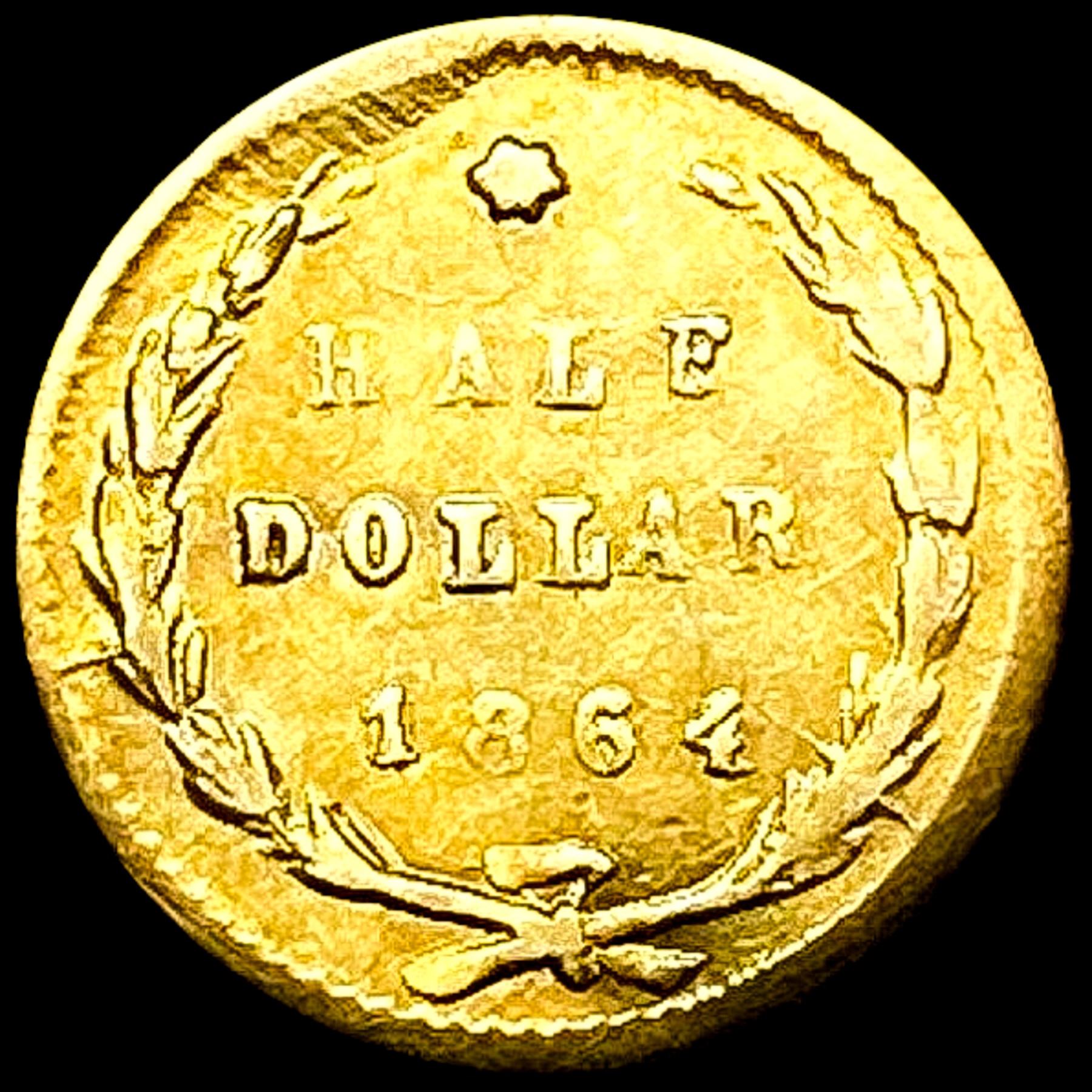 1864 BG-1016 Round California Gold Half Dollar UNC