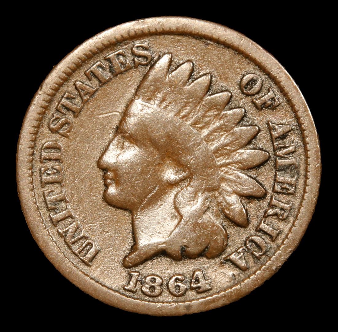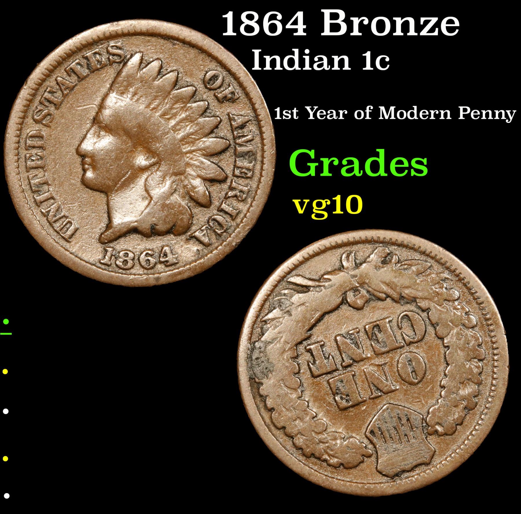 1864 Bronze Indian Cent 1c Grades vg+. 1st Year of Modern Penny
