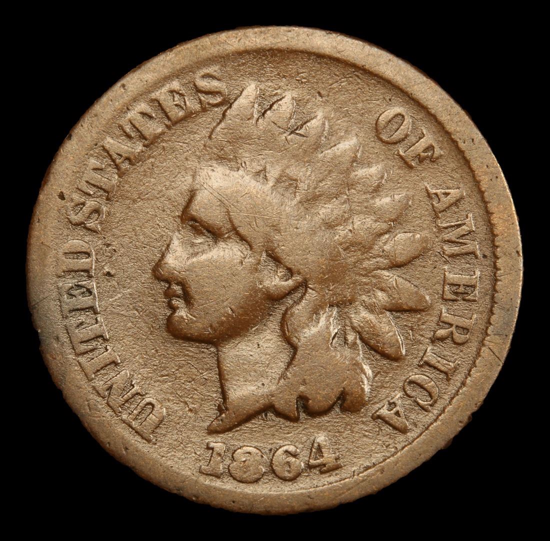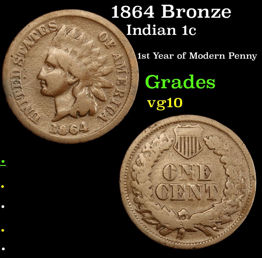 1864 Bronze 1st Year of Modern Penny . Indian Cent 1c Grades vg+.