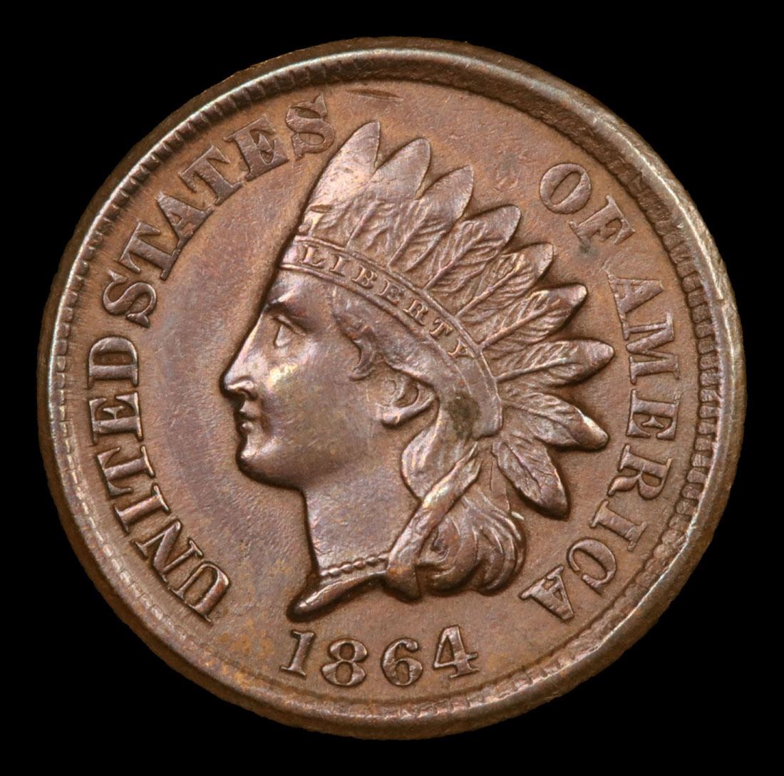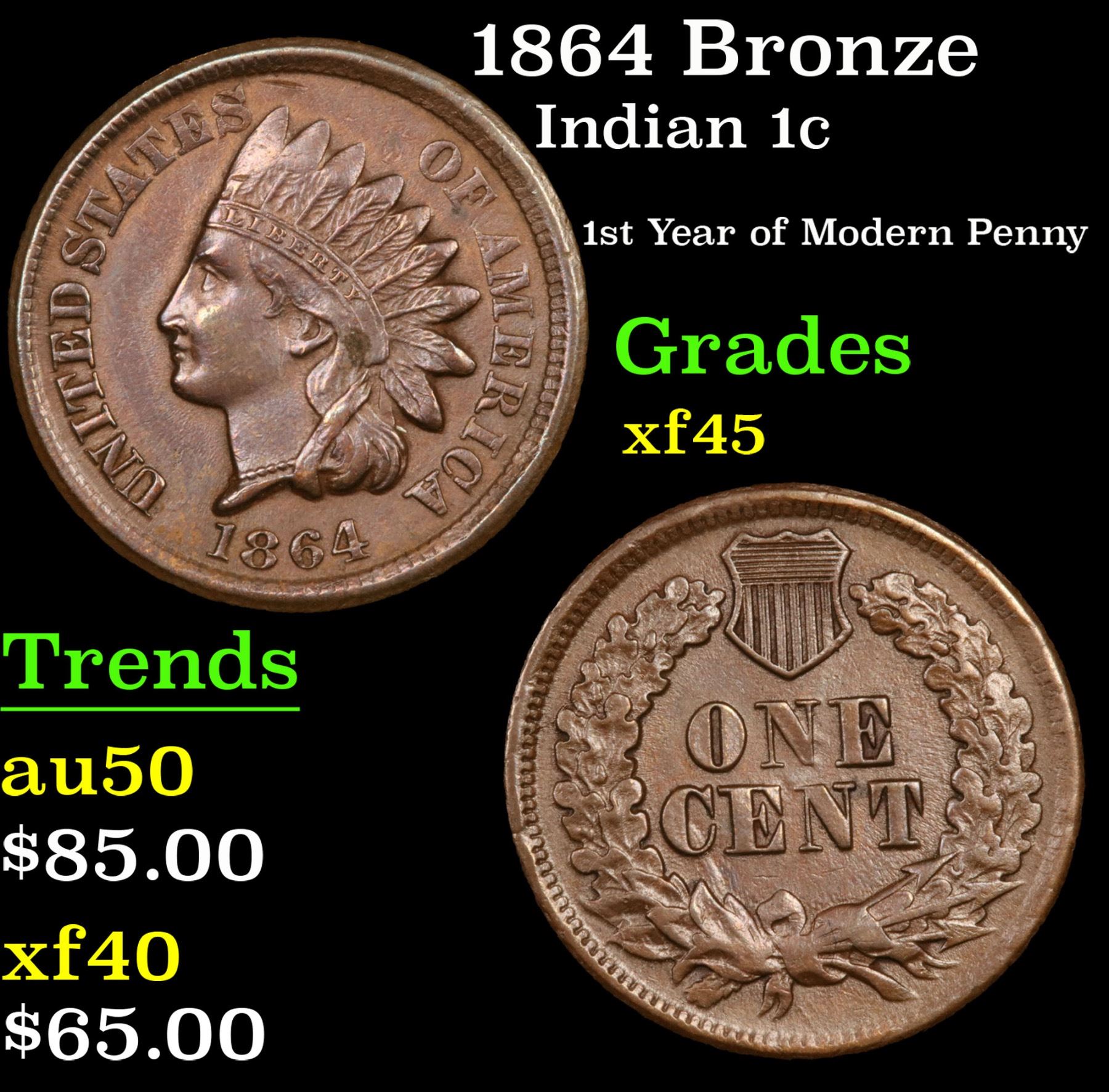 1864 Bronze 1st Year of Modern Penny . Indian Cent 1c Grades xf+.