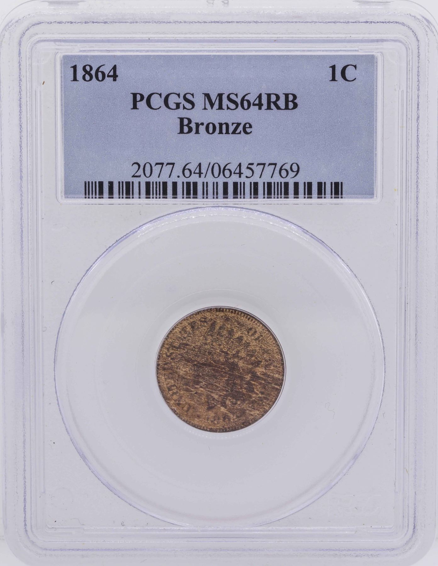 One 1864 Bronze Indian Head Penny Coin PCGS MS64RB.