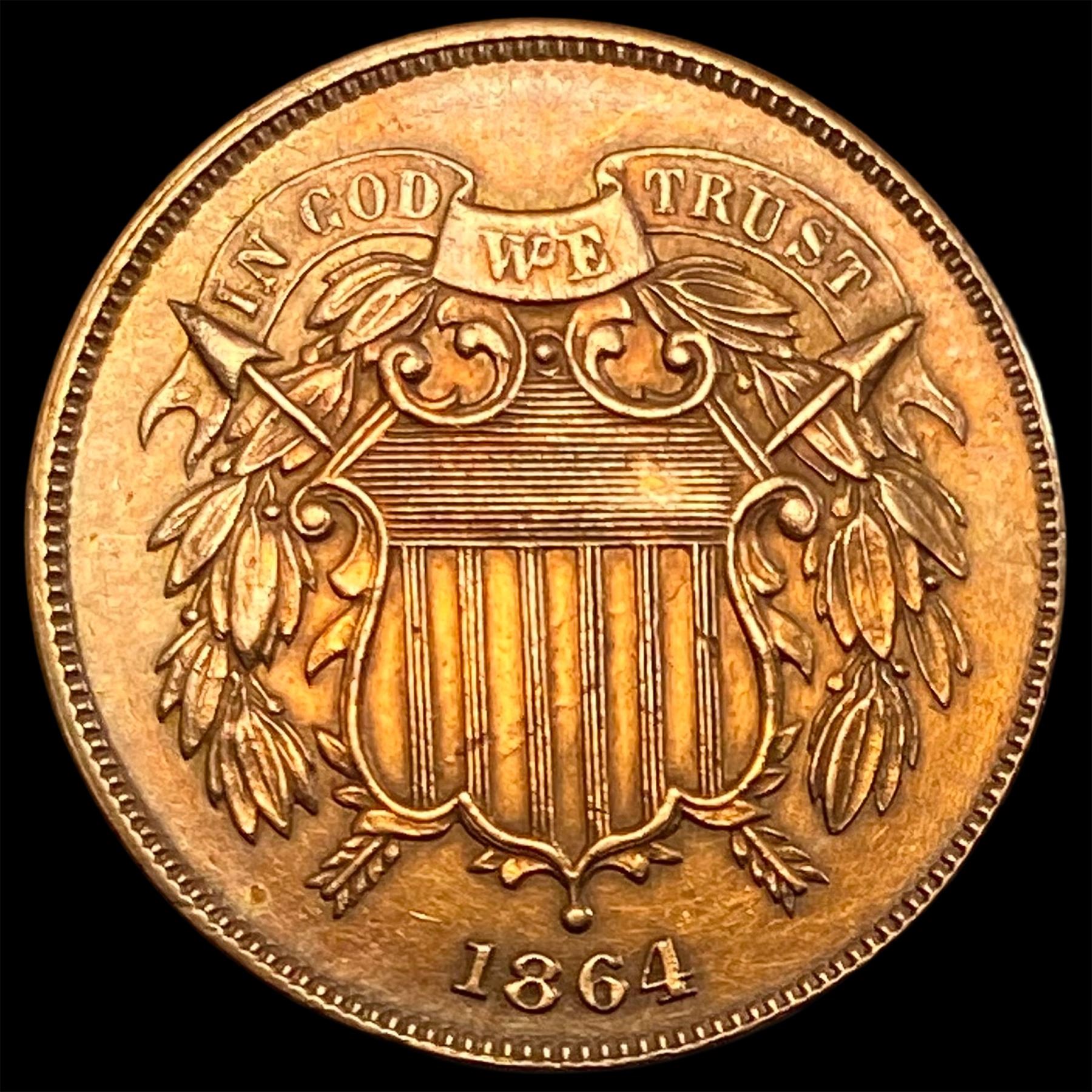 1864 Bronze Two-Cent Piece CLOSELY UNCIRCULATED