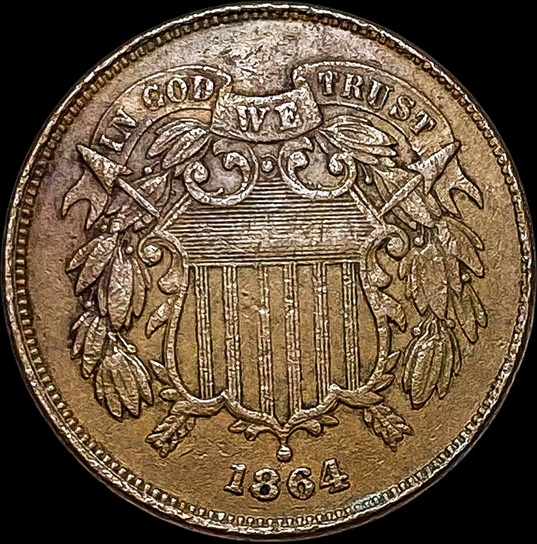1864 Bronze Two-Cent Piece NEARLY UNCIRCULATED
