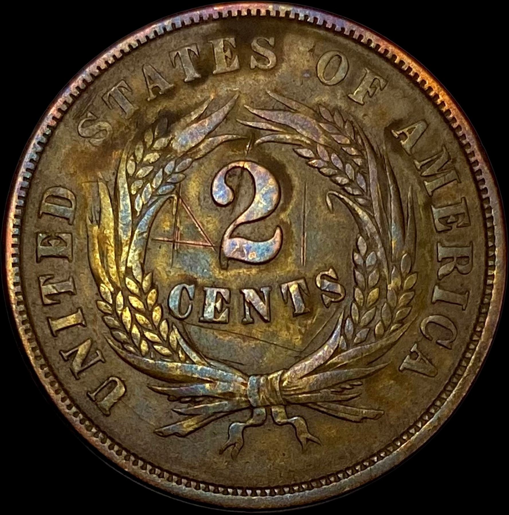 1864 Bronze Two-Cent Piece NEARLY UNCIRCULATED