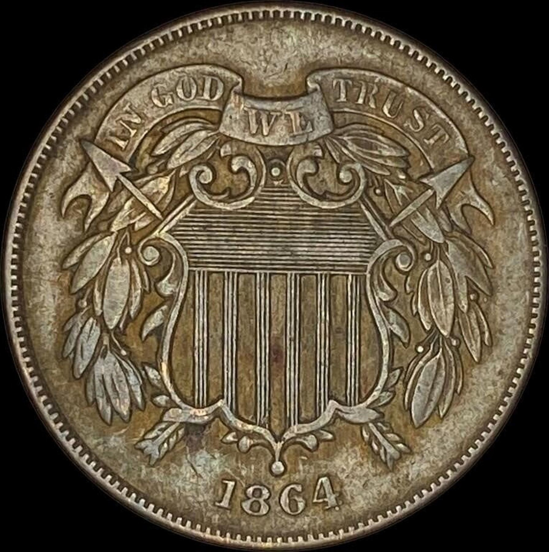 1864 Bronze Two-Cent Piece NEARLY UNCIRCULATED