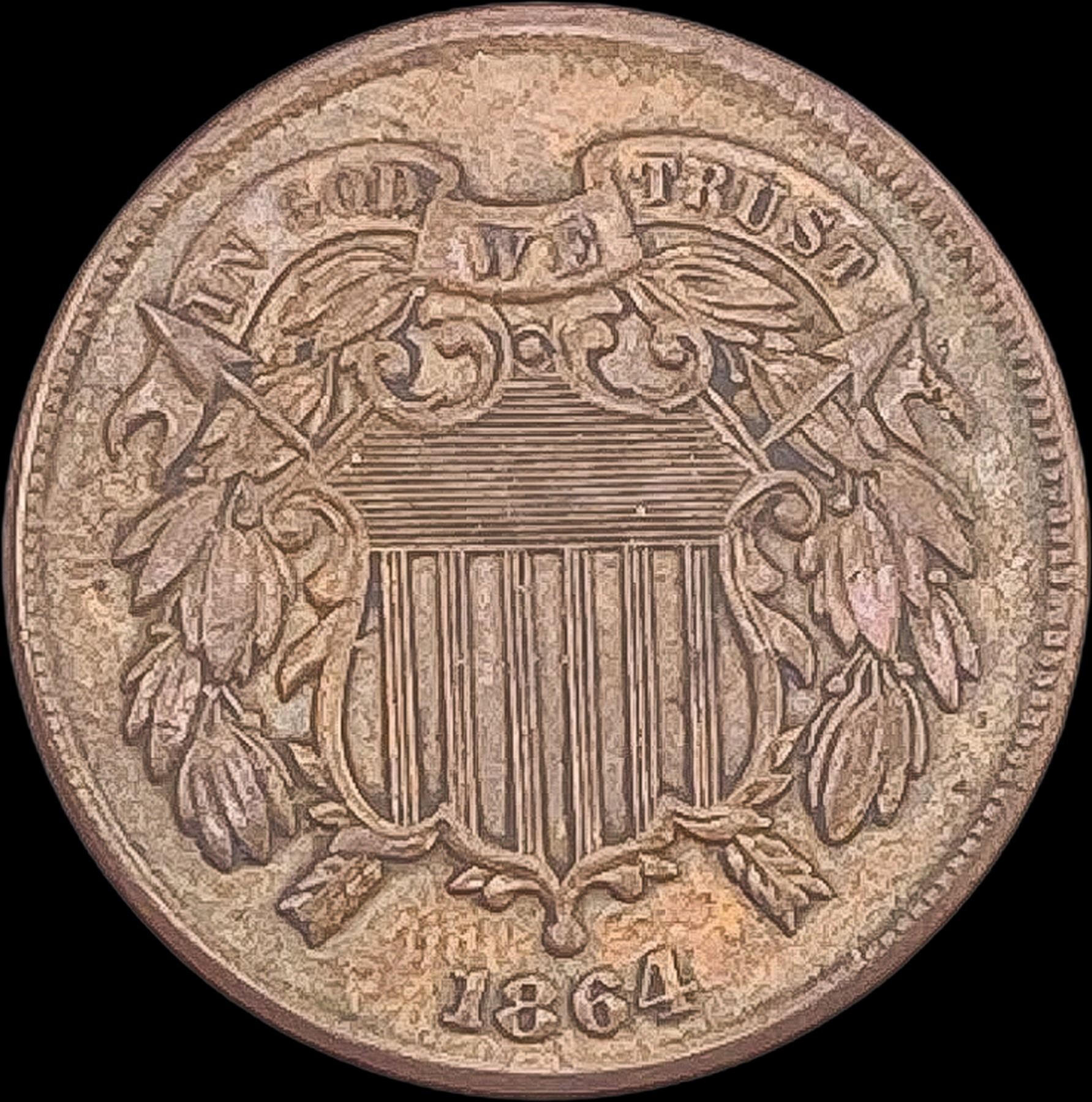 1864 Bronze Two-Cent Piece NEARLY UNCIRCULATED