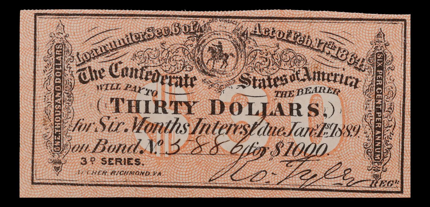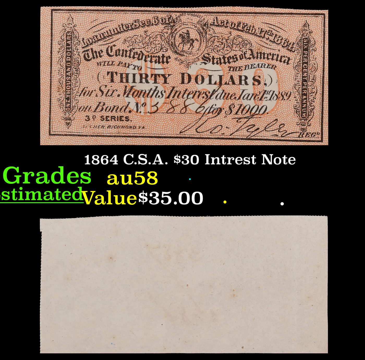 1864 C.S.A. $30 Intrest Note Grades Choice AU/BU Slider.