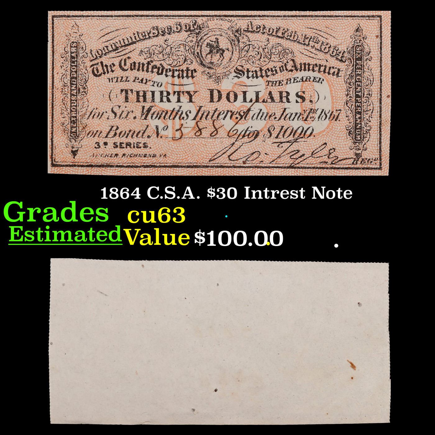 1864 C.S.A. $30 Intrest Note Grades Select CU.