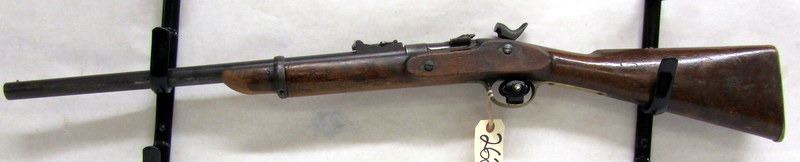 ANTIQUE, SINGLE-SHOT, .577 SNIDER, 19" BARREL, NO SN. STOCK HAS NUMBEROUS DENTS AND SCRATCHES. BLUEING HAS TURNED BROWN, HAS SOME PITTING AND DENTS FROM USE. BORE IS LIGHTLY PITTED BUT HAS GOOD RIFLING. STOCK HAS "DC" CANADIAN STAMPINGS. RECEIVER HAS BRITISH PROOFS AND WAR DEPARTMENT STAMPINGS.